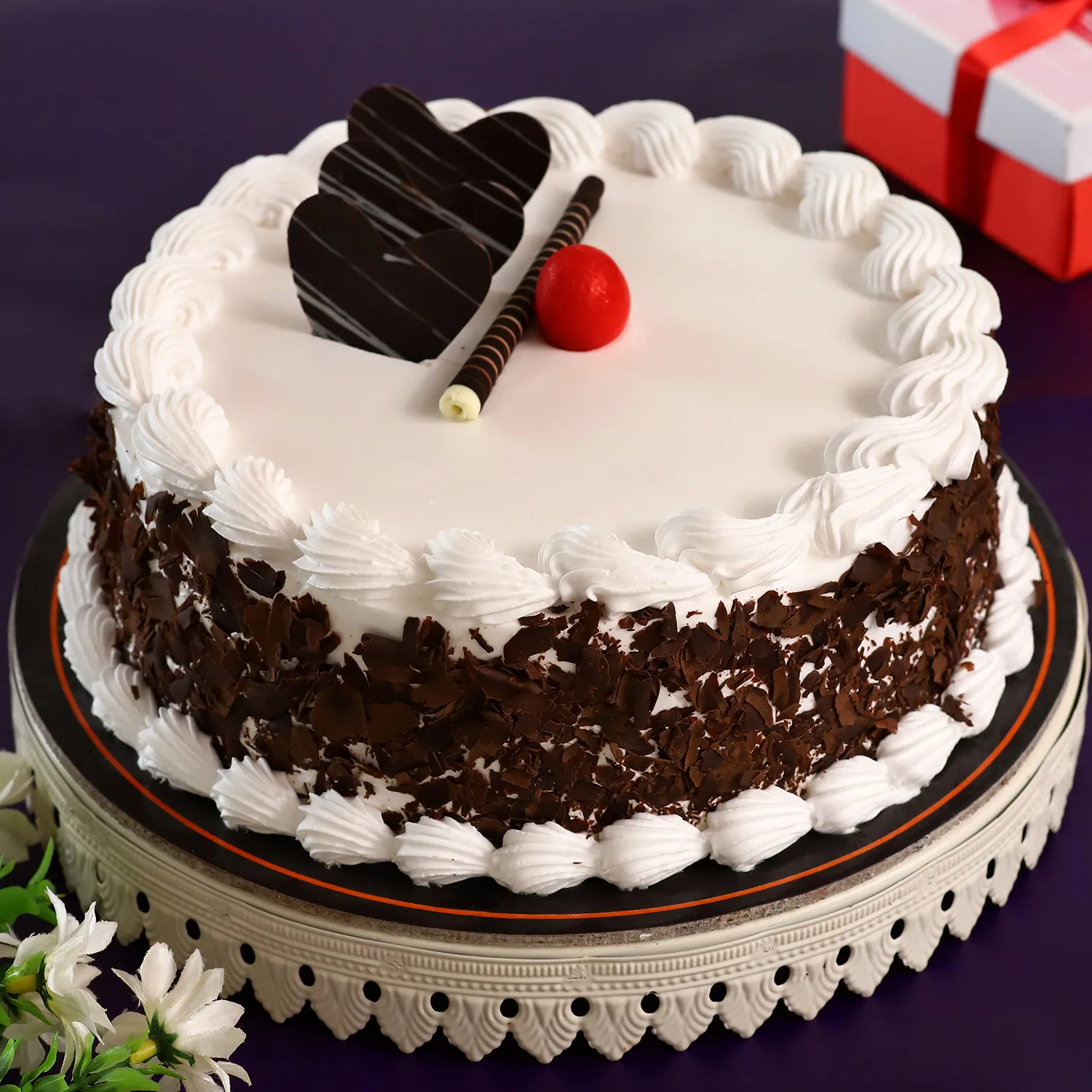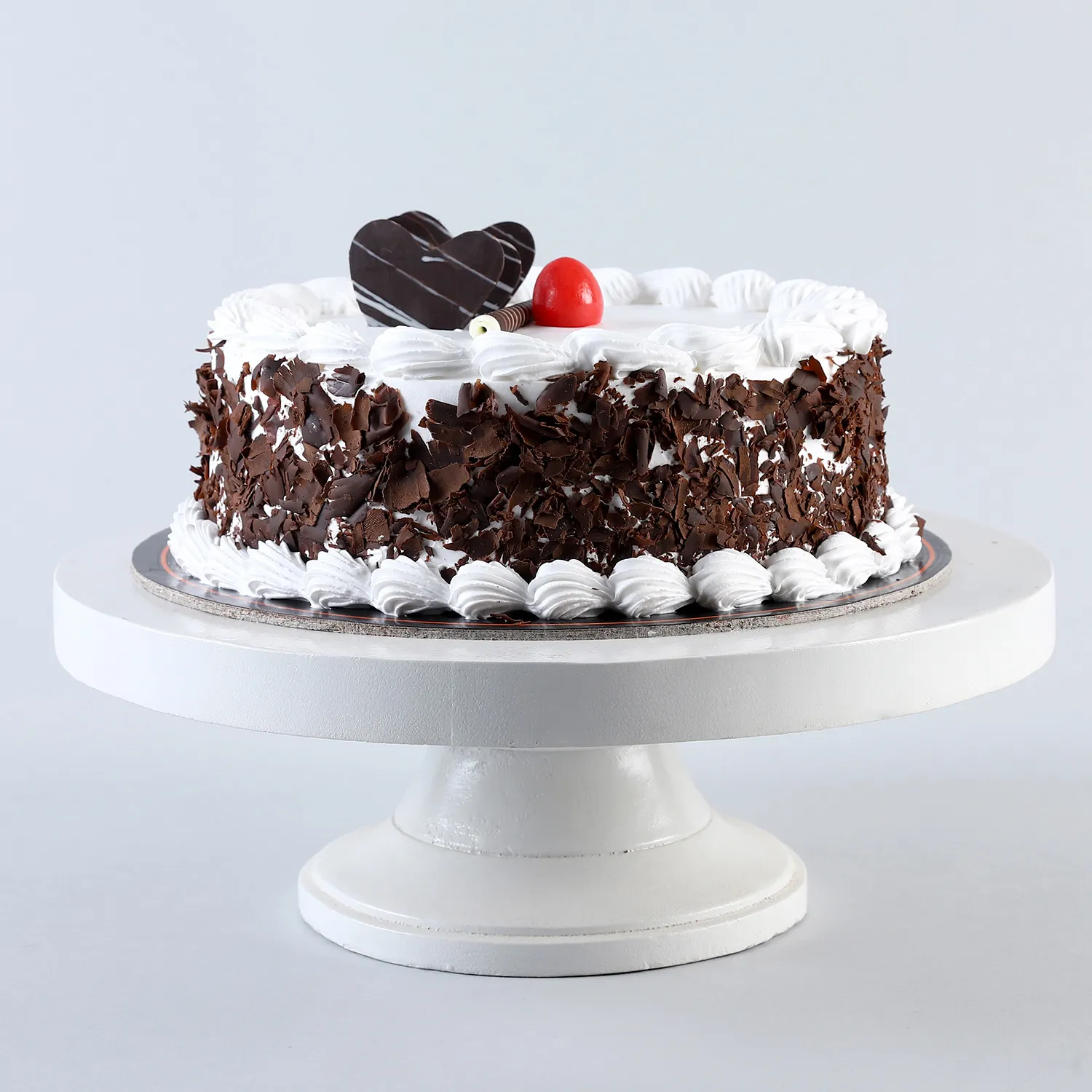 Black Forest cake is a chocolate sponge cake with a rich cherry filling based on the German dessert. This is a perfect cake to be ordered. Black Forest cake consists of several layers of chocolate sponge cake sandwiched with whipped cream and cherries. It is decorated with additional whipped cream, maraschino cherries, and chocolate shavings. Everyone loves a rich, chocolaty Black Forest cake crammed with cream, kirsch and cherries.