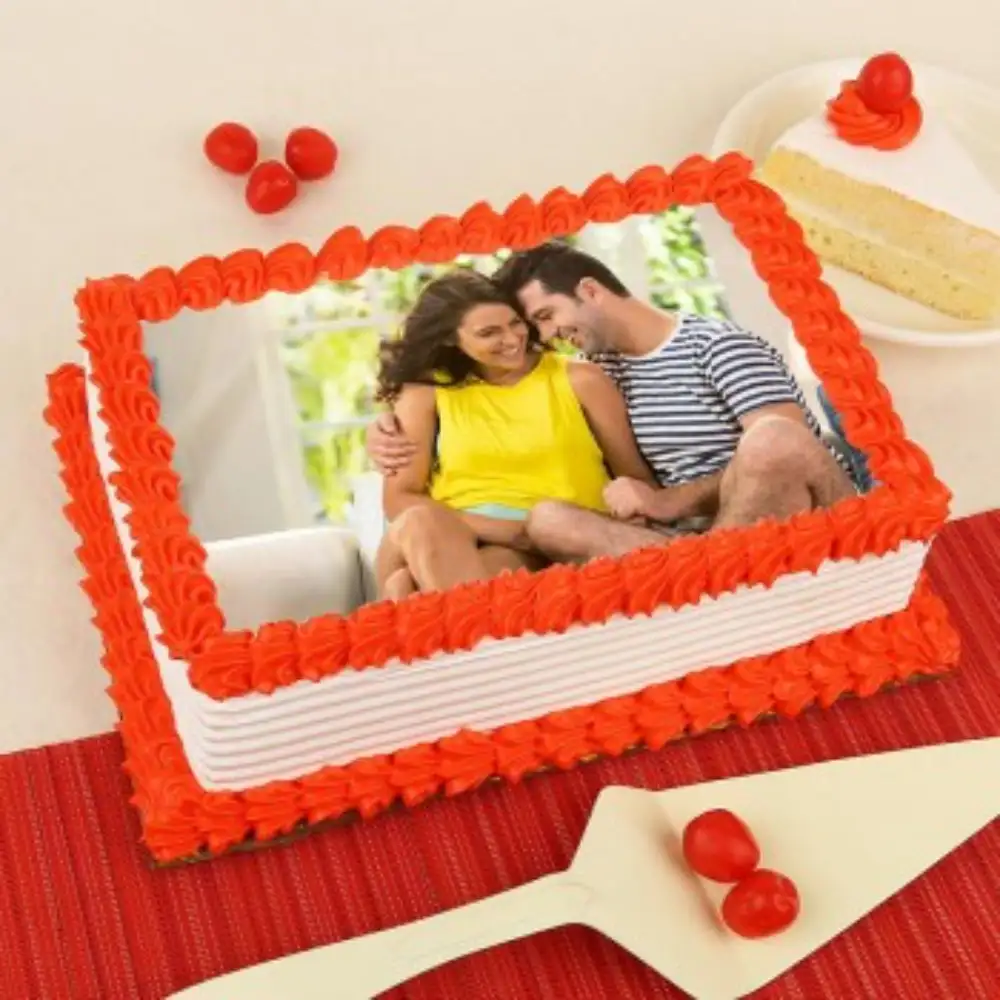 The top of the cake is then decorated with an edible image of your choice, making it a perfect way to celebrate special occasions, birthdays, or simply to treat yourself. The image is printed using edible ink on a frosting sheet and placed on the top of the cake, ensuring that it will look vibrant and clear. Whether you're serving it as a dessert or as a special treat for a loved one, a photo cake in square shape flavored with strawberry is sure to impress.