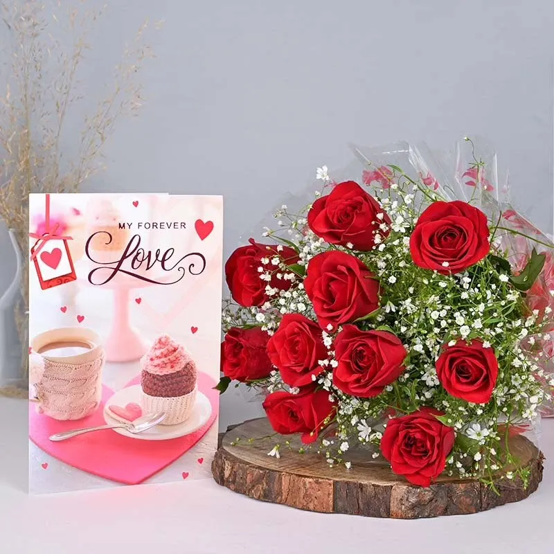 A red rose bouquet with green filler is a classic and elegant arrangement. Here’s a description: The bouquet features rich, velvety red roses as the focal point, each bloom showcasing deep, vibrant hues and lush, full petals. The roses are arranged with a variety of green fillers, such as delicate ferns, eucalyptus, or baby's breath, adding texture and contrast to the bold red flowers. The green fillers accentuate the roses, providing a fresh and natural touch. The bouquet is often wrapped in a complementary green or neutral-toned paper or fabric, with a ribbon or bow tying it together. The overall effect is a striking and romantic arrangement, perfect for expressing love, admiration, or celebration.